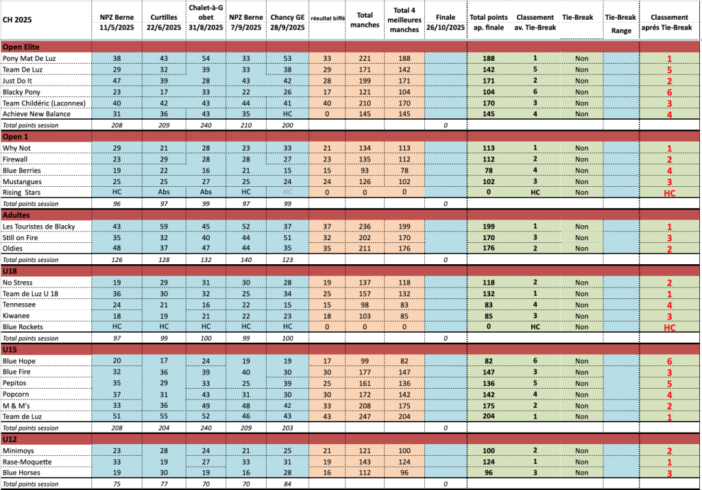 résultats 2025 Vous trouverez tous les résultats de la saison 2025 sur le site de MG- Scoreboard et le tableau des points actuels :